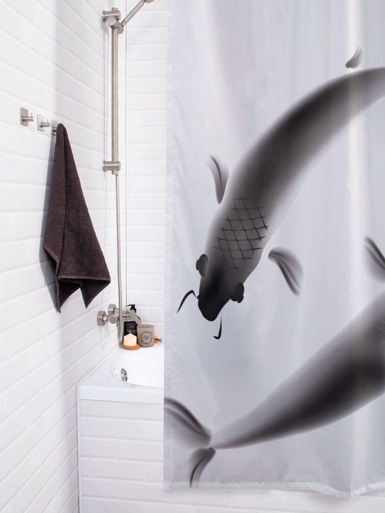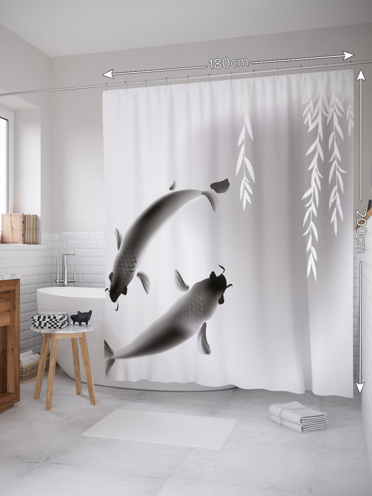 JoyArty Штора для ванной с водоотталкивающей пропиткой «Карпы кои хром»-30% +83