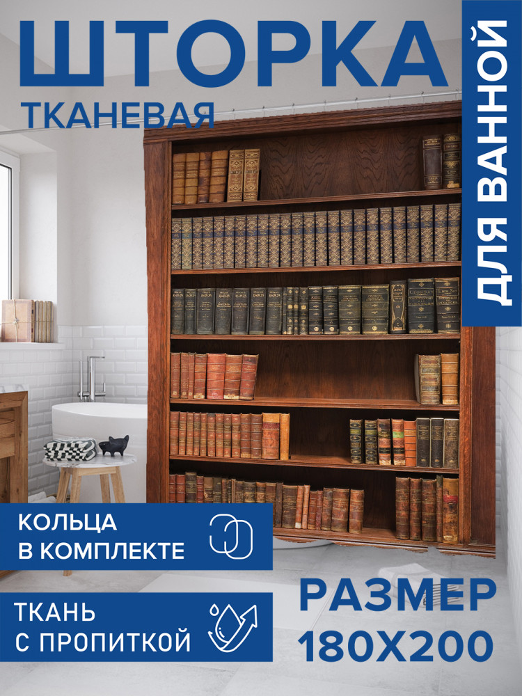 JoyArty Штора для ванной с водоотталкивающей пропиткой «Книжный набор»-20% +94