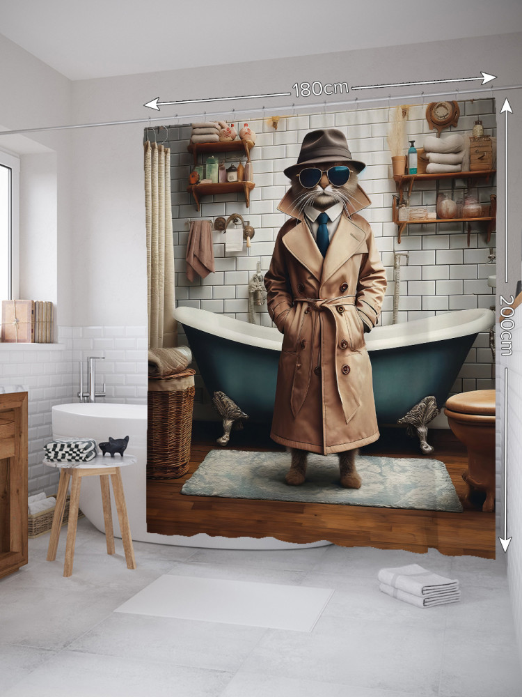 JoyArty Штора для ванной с водоотталкивающей пропиткой «Кот шпион»-20% +263