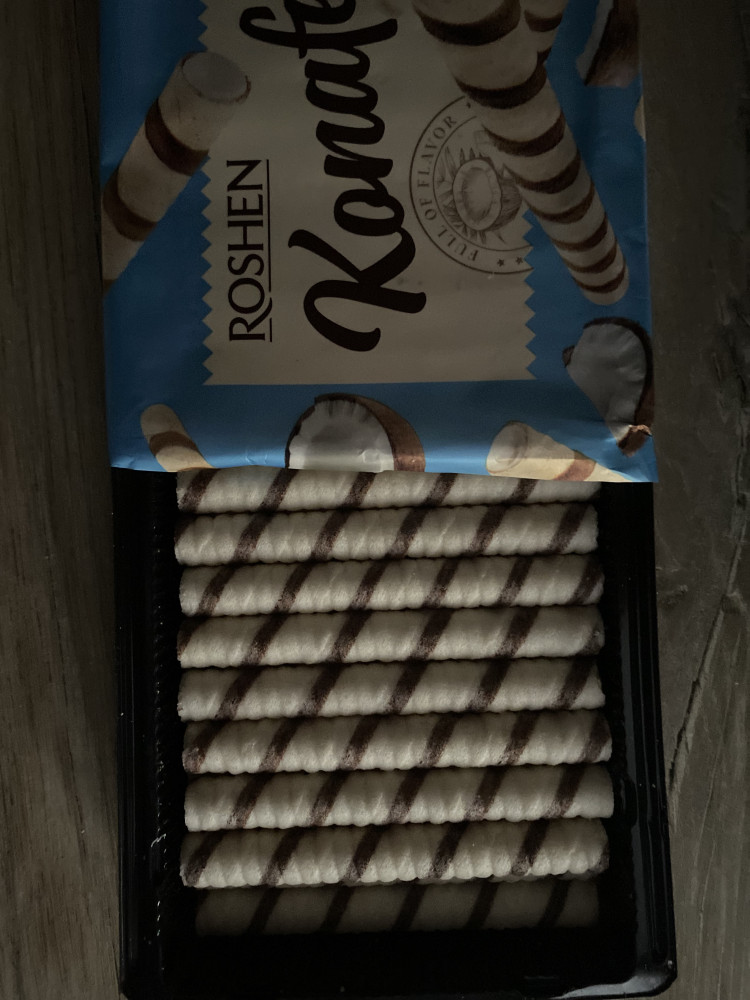 Как раз именно такие трубочек с кокосовым кремом не было в простых магазинах, магнуме (только сливомные, ореховые, какао)