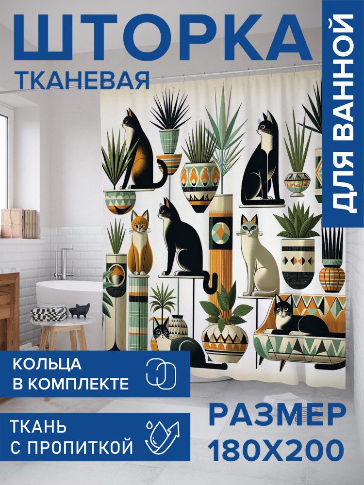JoyArty Штора для ванной с водоотталкивающей пропиткой «Коты в оранжерее»-20% +263