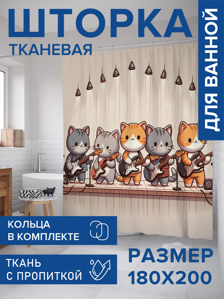 JoyArty Штора для ванной с водоотталкивающей пропиткой «Коты музыканты»-20% +263
