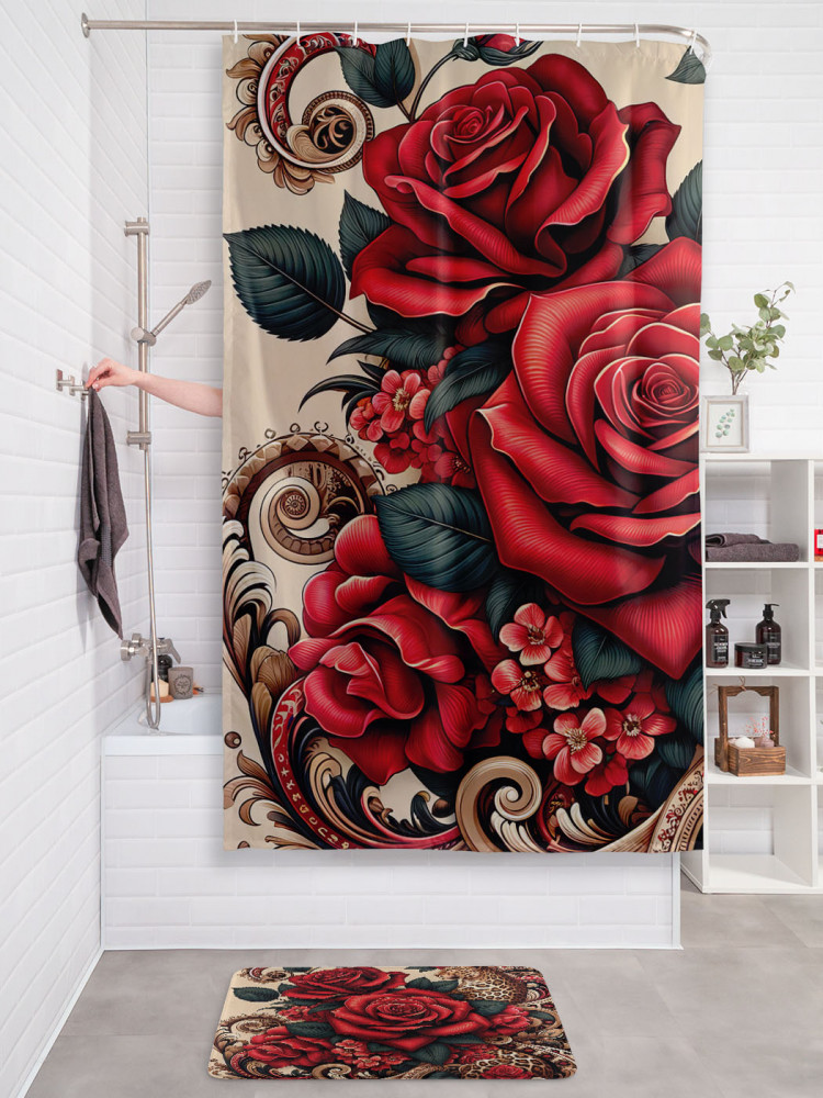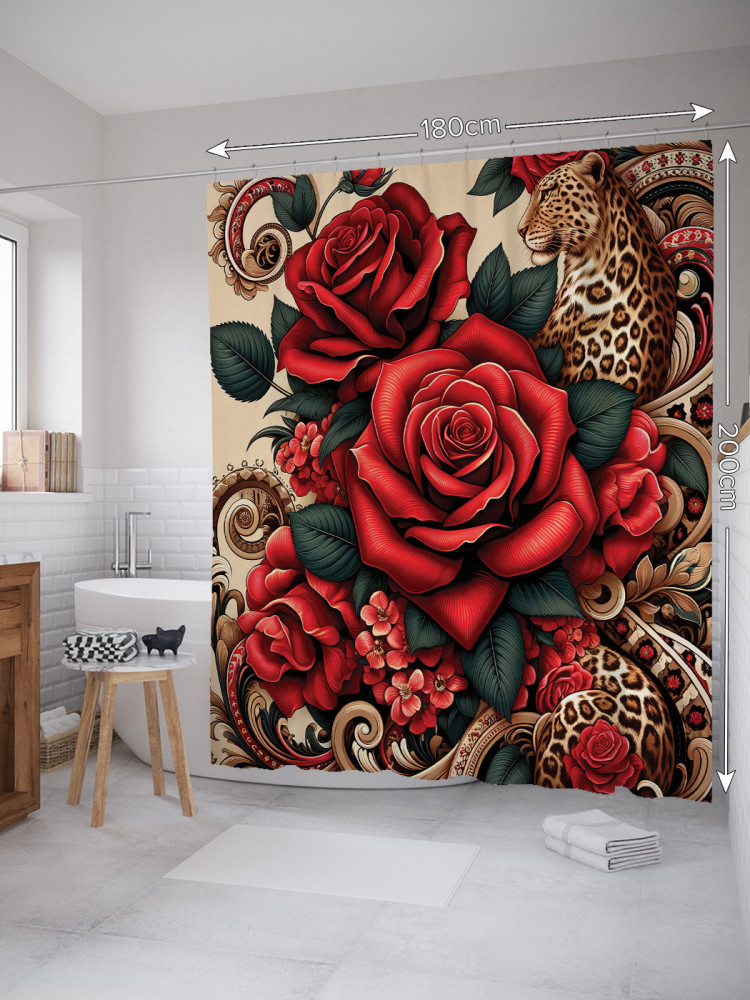 JoyArty Штора для ванной с водоотталкивающей пропиткой «Леопард в розах»-20% +94