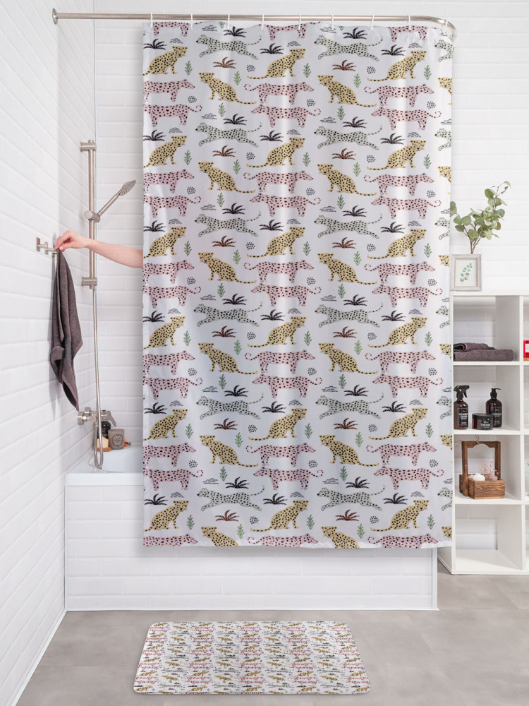 JoyArty Штора для ванной с водоотталкивающей пропиткой «Леопарды на прогулке»-30% +83