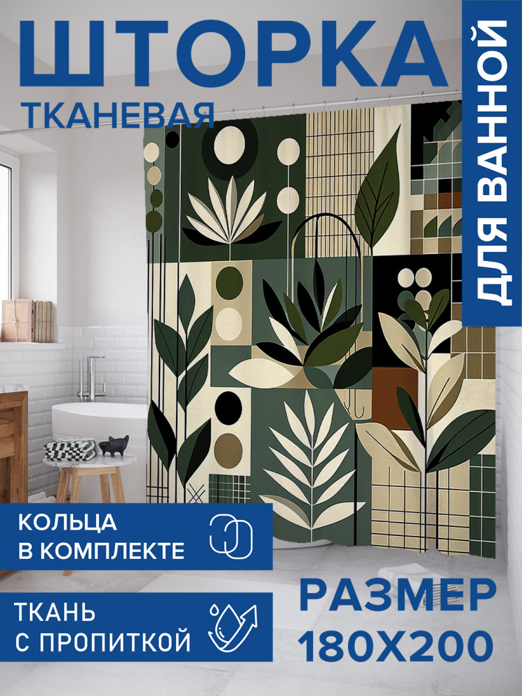JoyArty Штора для ванной с водоотталкивающей пропиткой «Листовая абстракция»-30% +83