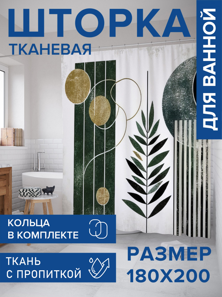 JoyArty Штора для ванной с водоотталкивающей пропиткой «Листья между полосами»-30% +83