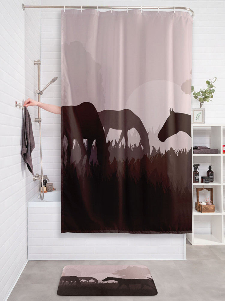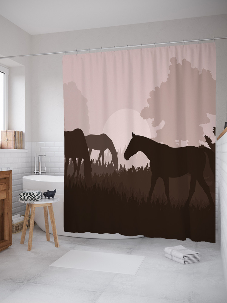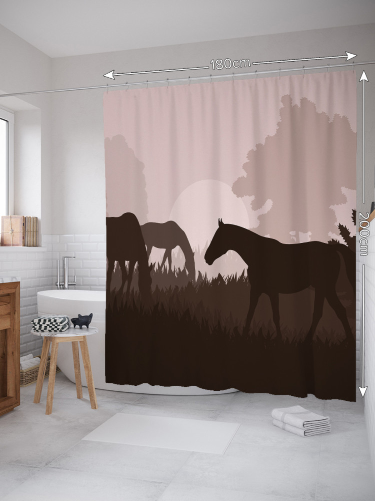 JoyArty Штора для ванной с водоотталкивающей пропиткой «Лошади на пастбище»-30% +83