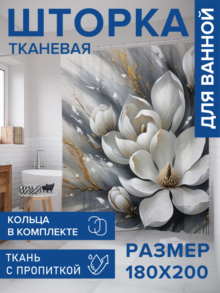 JoyArty Штора для ванной с водоотталкивающей пропиткой «Магнолия на мазках краски»-30% +83