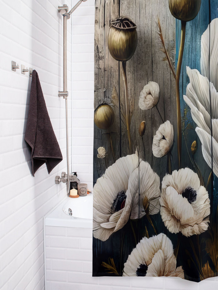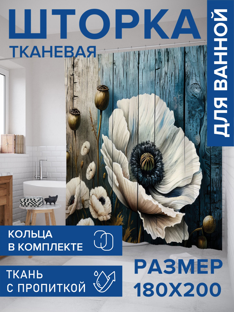 JoyArty Штора для ванной с водоотталкивающей пропиткой «Маки на досках»-20% +263