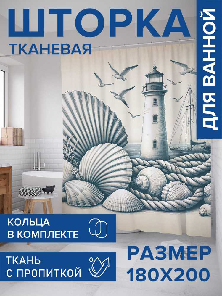 JoyArty Штора для ванной с водоотталкивающей пропиткой «Маяк в ракушках»-30% +83