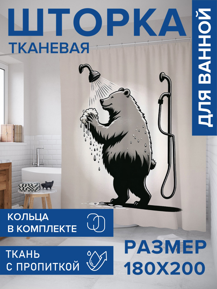 JoyArty Штора для ванной с водоотталкивающей пропиткой «Медведь в душе»-30% +83