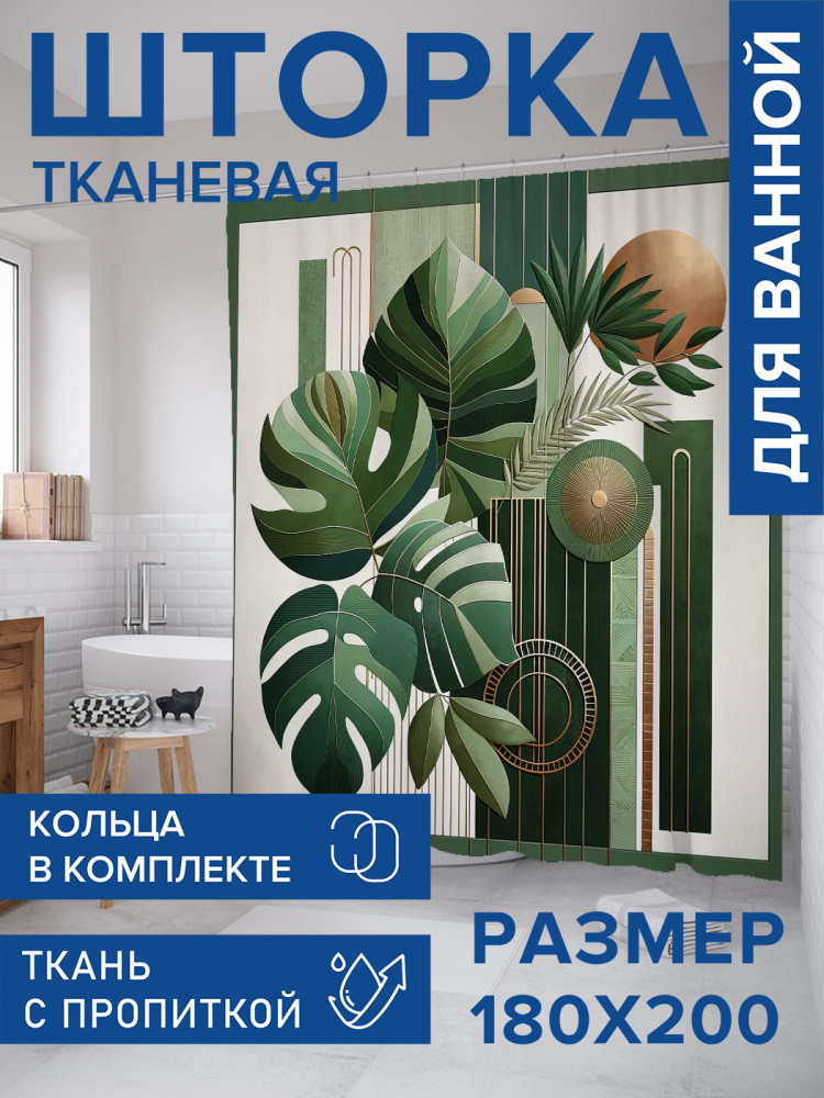 JoyArty Штора для ванной с водоотталкивающей пропиткой «Монстера в искусстве»-30% +83