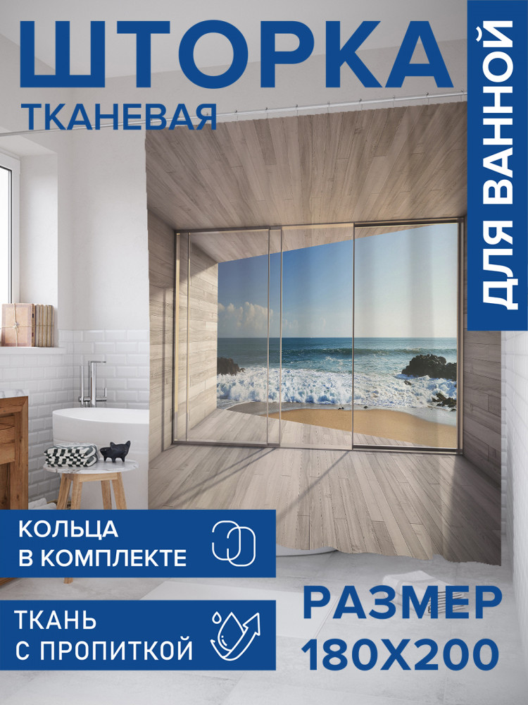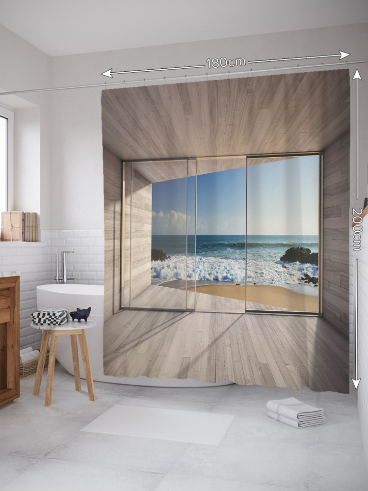 JoyArty Штора для ванной с водоотталкивающей пропиткой «Море за стеклом»-30% +83
