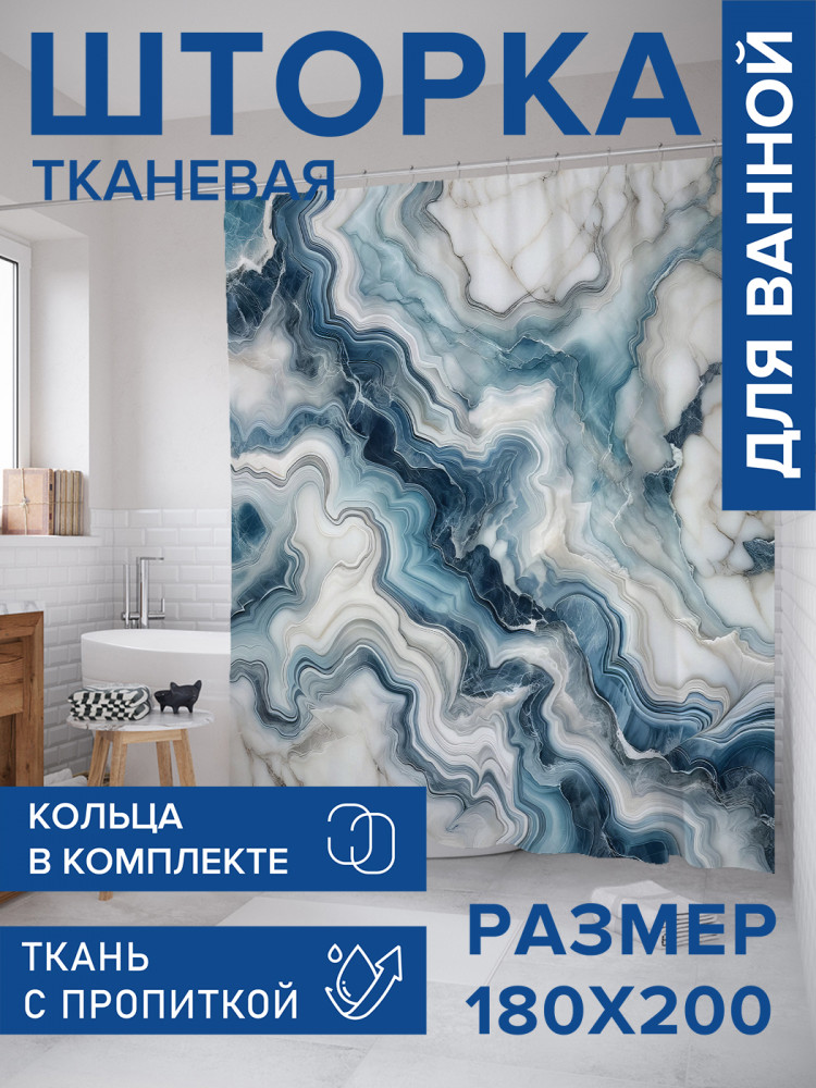 JoyArty Штора для ванной с водоотталкивающей пропиткой «Мрамор голубой»-30% +83