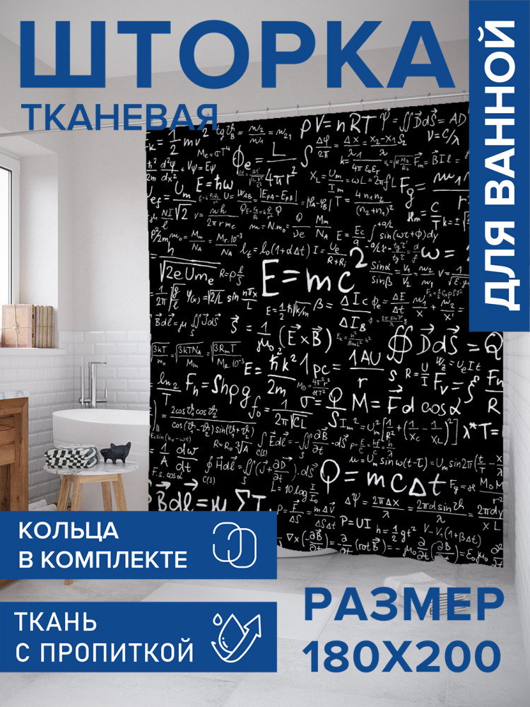 JoyArty Штора для ванной с водоотталкивающей пропиткой «Научные формулы»-20%
