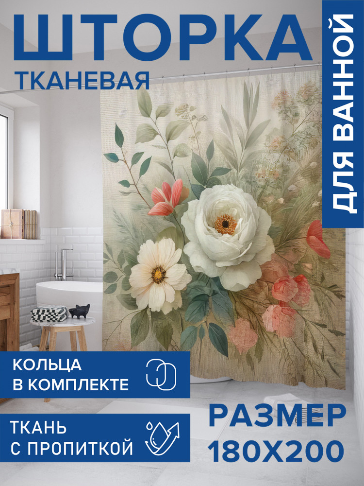 JoyArty Штора для ванной с водоотталкивающей пропиткой «Нежные пионы»-20% +263