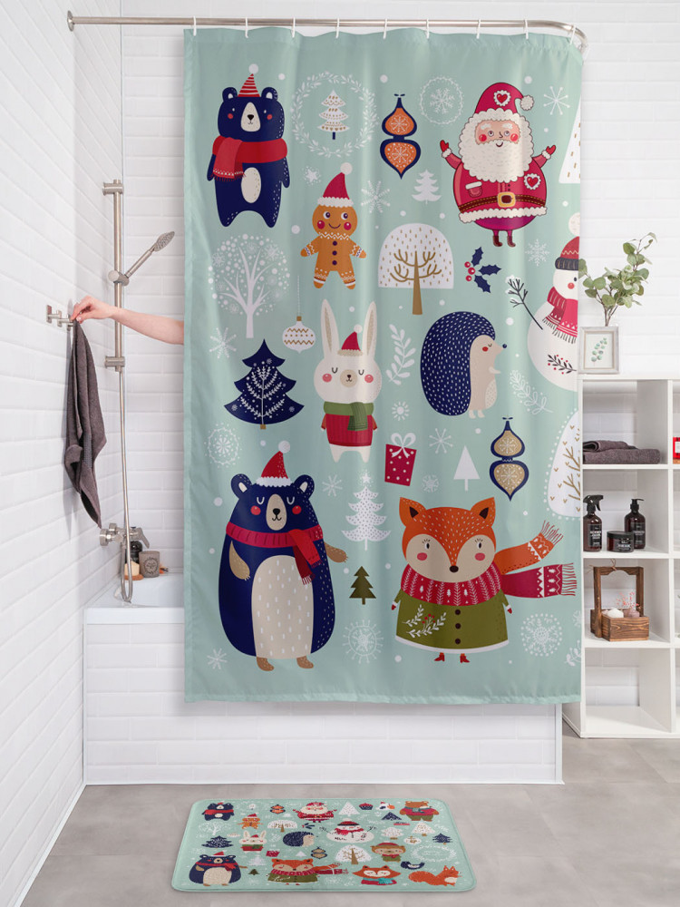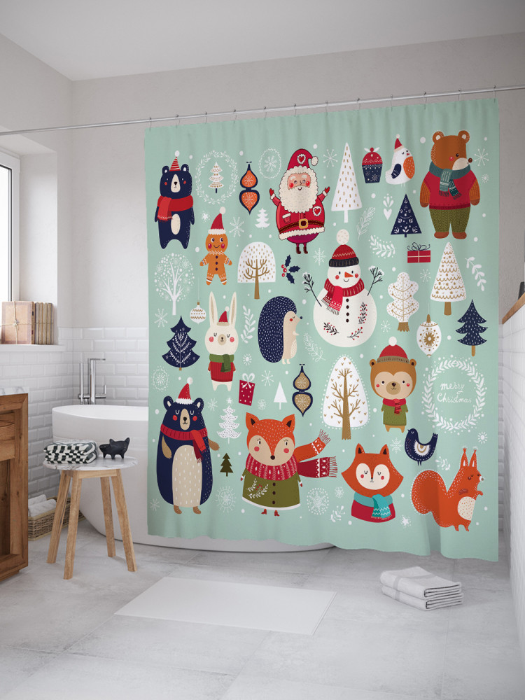 JoyArty Штора для ванной с водоотталкивающей пропиткой «Новогодние зверюшки»-20% +94