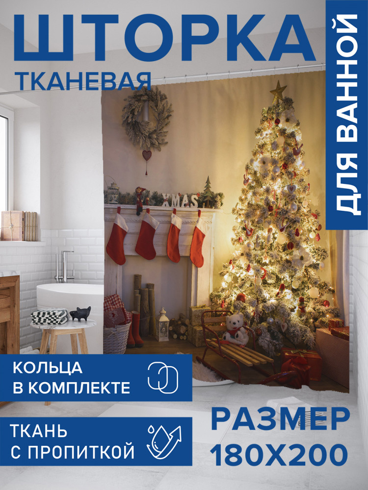 JoyArty Штора для ванной с водоотталкивающей пропиткой «Новогодняя атмосфера»-20% +263