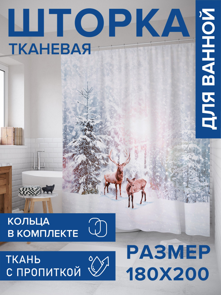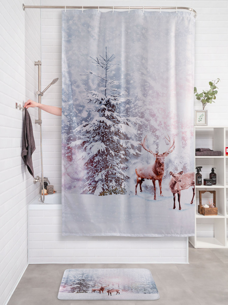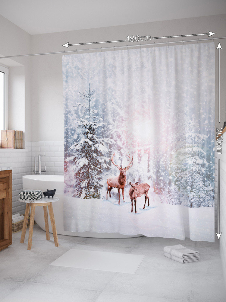 JoyArty Штора для ванной с водоотталкивающей пропиткой «Олени в снегу»-20% +94
