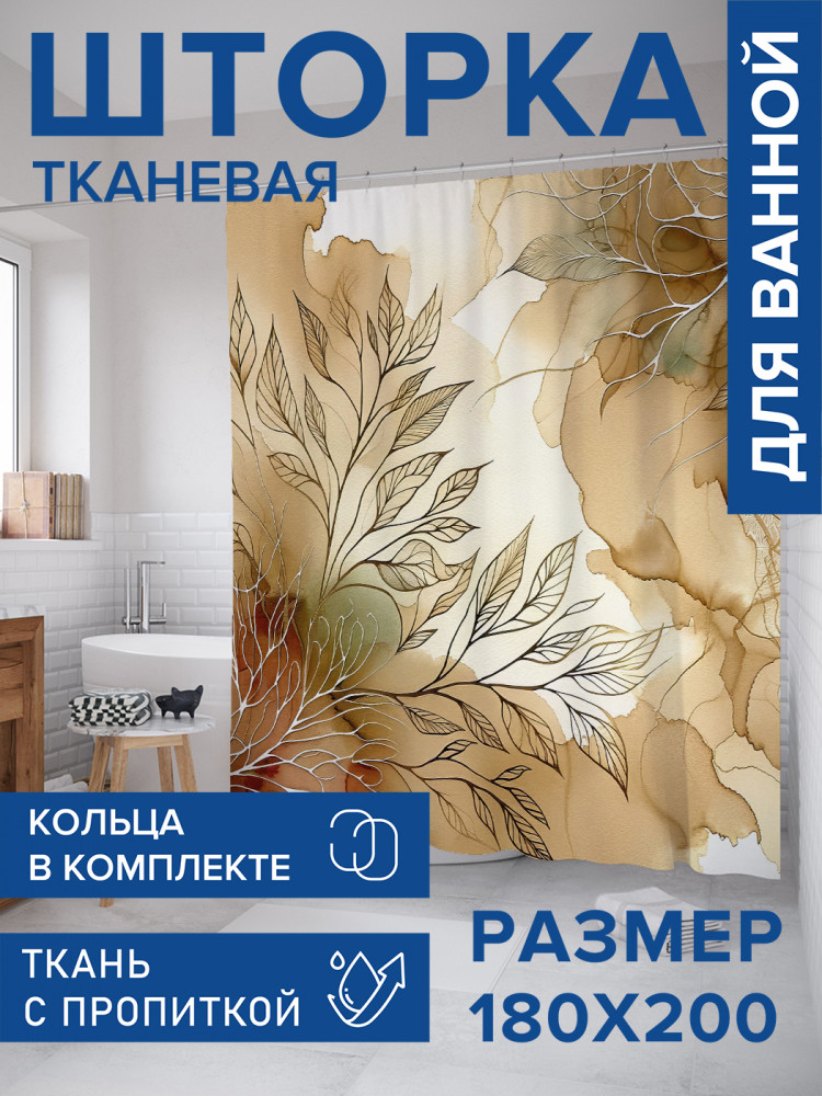 JoyArty Штора для ванной с водоотталкивающей пропиткой «Орнамент листьев»-20% +94