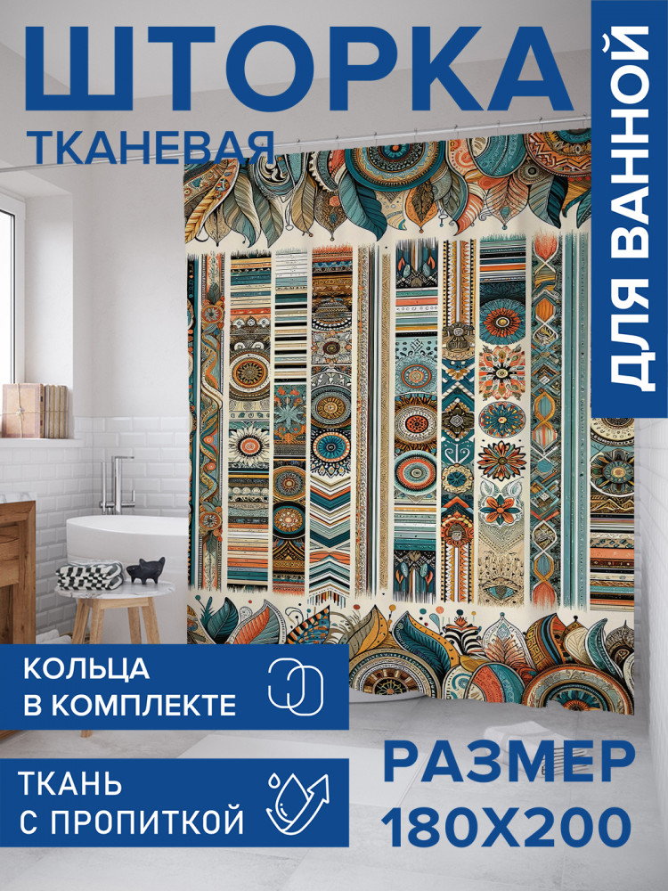 JoyArty Штора для ванной с водоотталкивающей пропиткой «Орнаменты народов»-20% +263