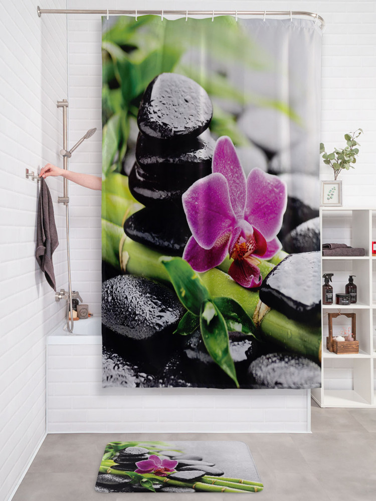 JoyArty Штора для ванной с водоотталкивающей пропиткой «Орхидея в каменном саду»-30% +83