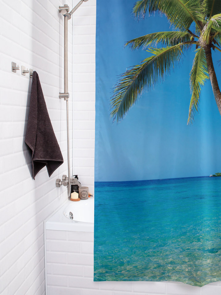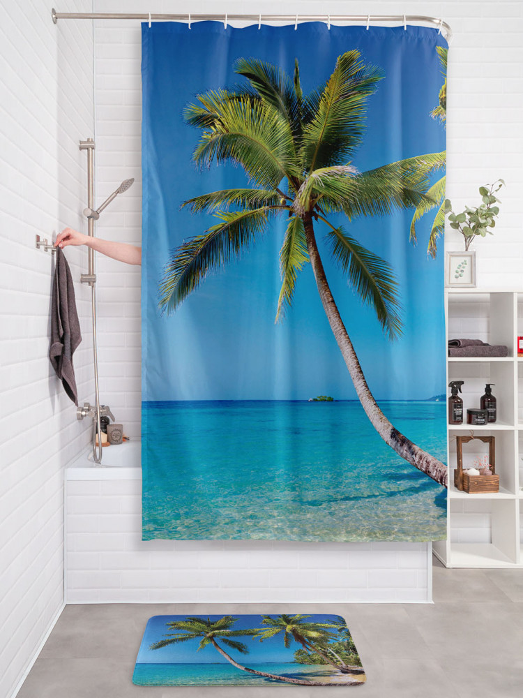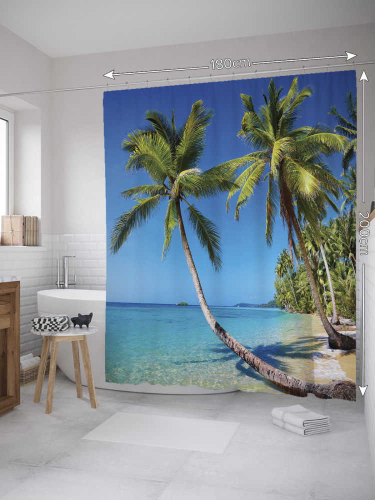 JoyArty Штора для ванной с водоотталкивающей пропиткой «Падающая пальма на пляже»-30% +83