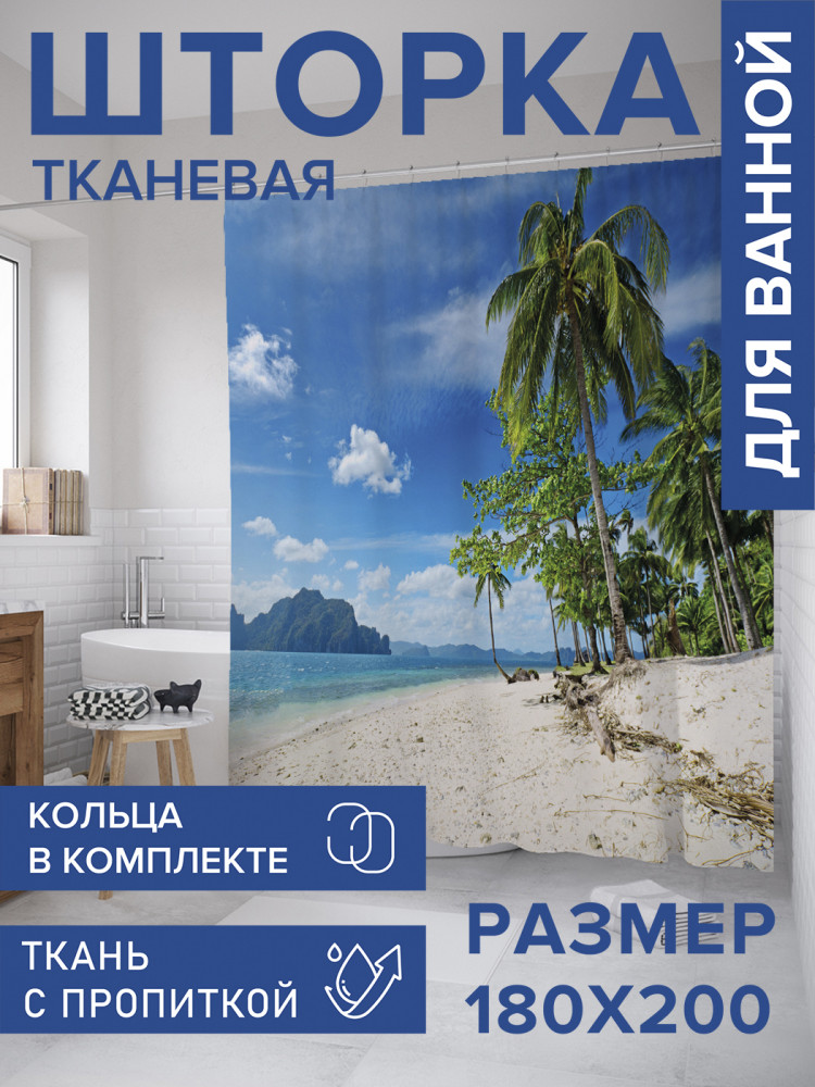 JoyArty Штора для ванной с водоотталкивающей пропиткой «Пальмы на островах»-30% +83