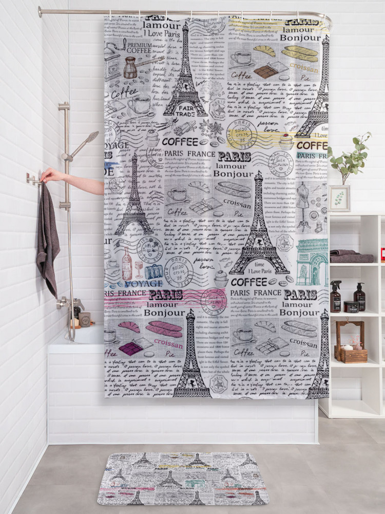 JoyArty Штора для ванной с водоотталкивающей пропиткой «Парижская газета»-20% +94