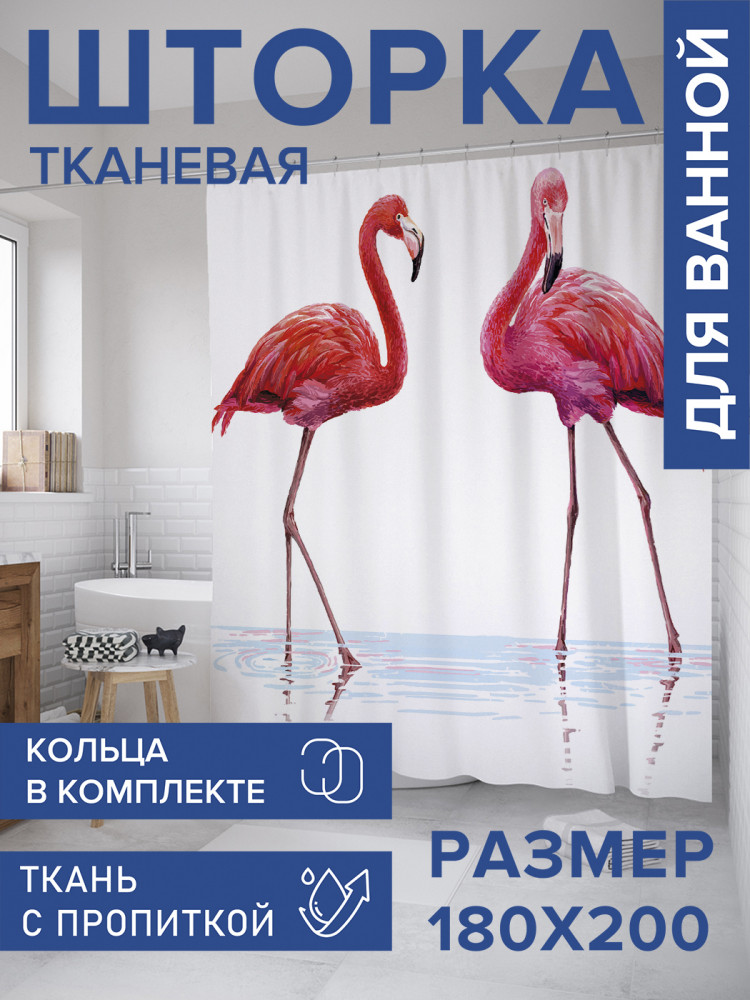 JoyArty Штора для ванной с водоотталкивающей пропиткой «Парочка фламинго»-30% +83
