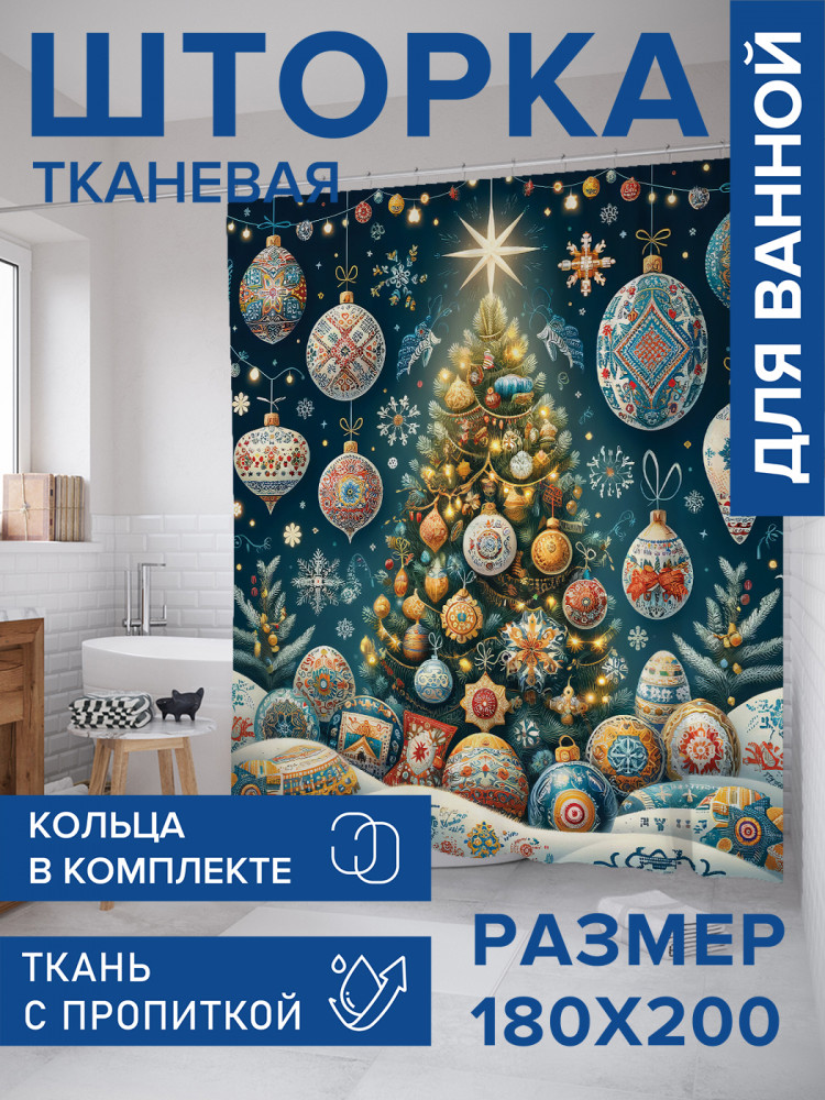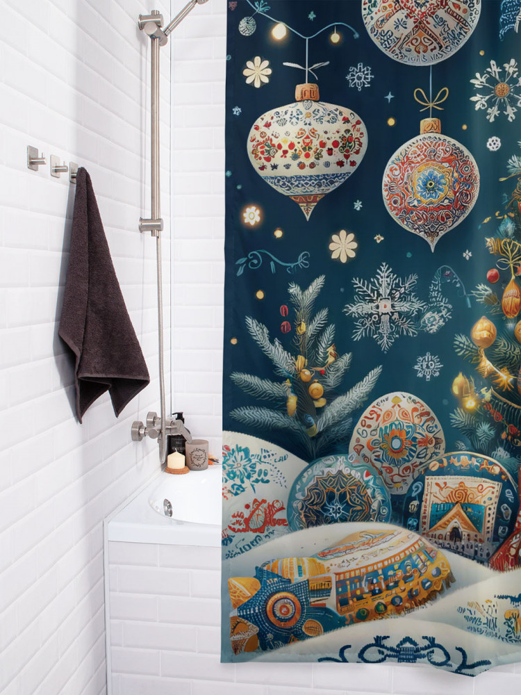 Штора для ванной с водоотталкивающей пропиткой «Праздничная елка» | JoyArty