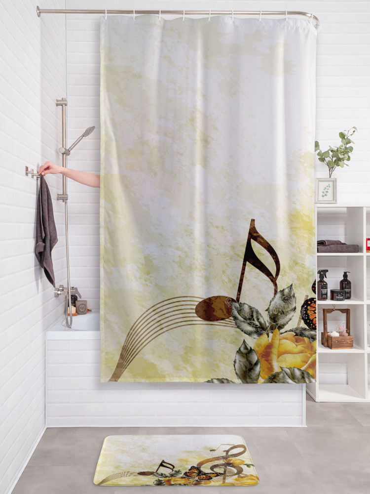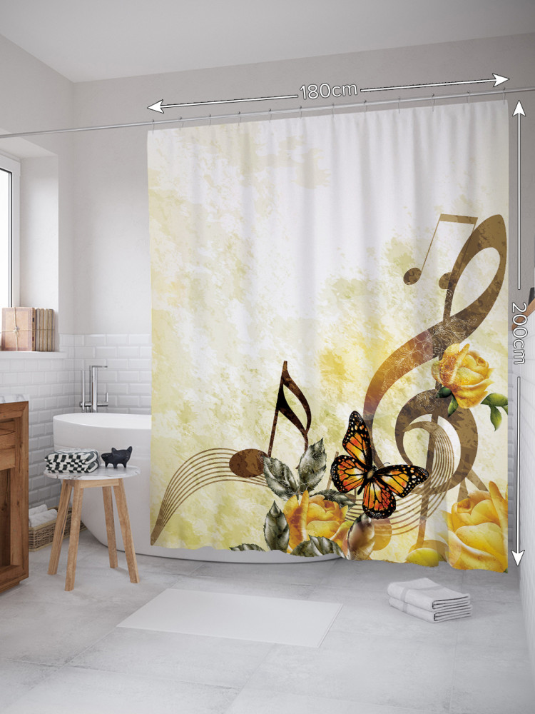 Штора для ванной с водоотталкивающей пропиткой «Природа и музыка» | JoyArty
