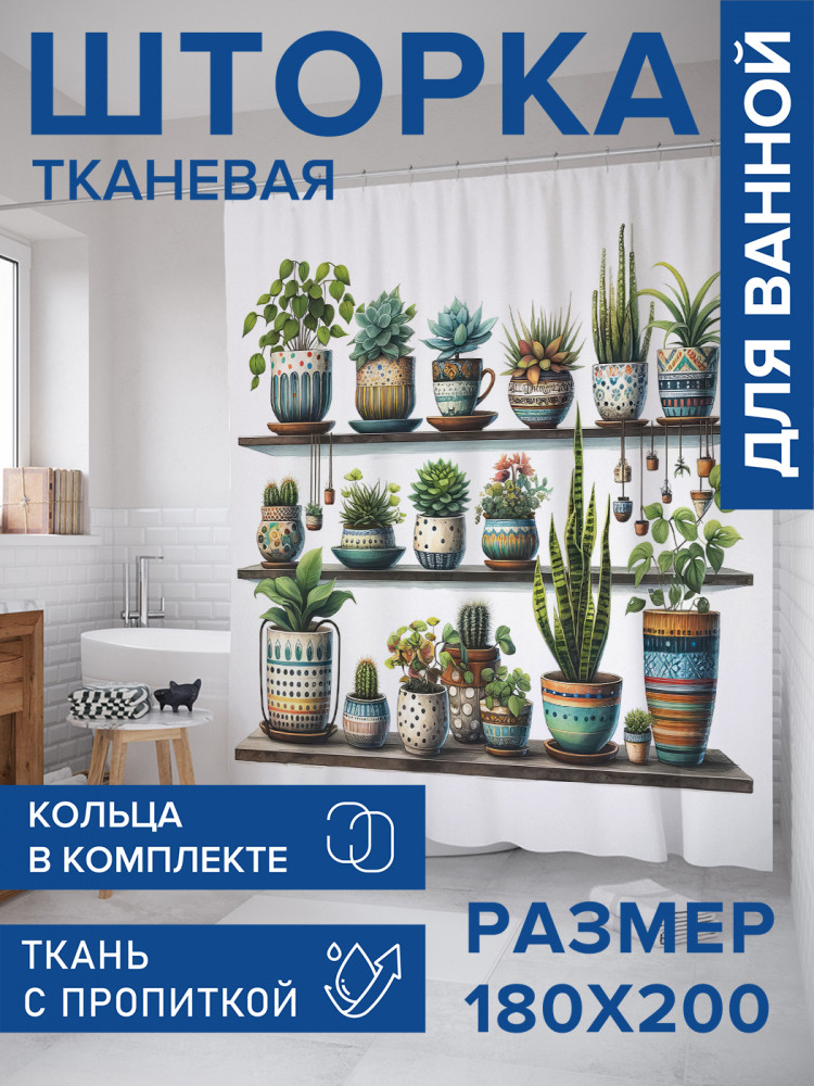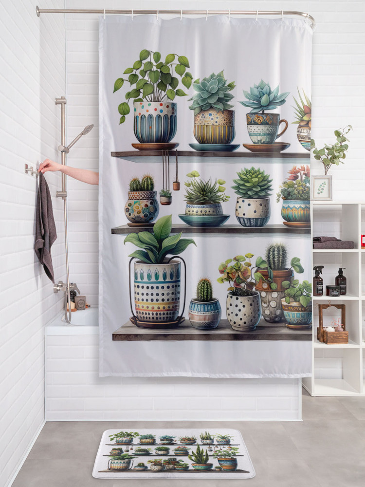 JoyArty Штора для ванной с водоотталкивающей пропиткой «Растения на полке»-20% +94