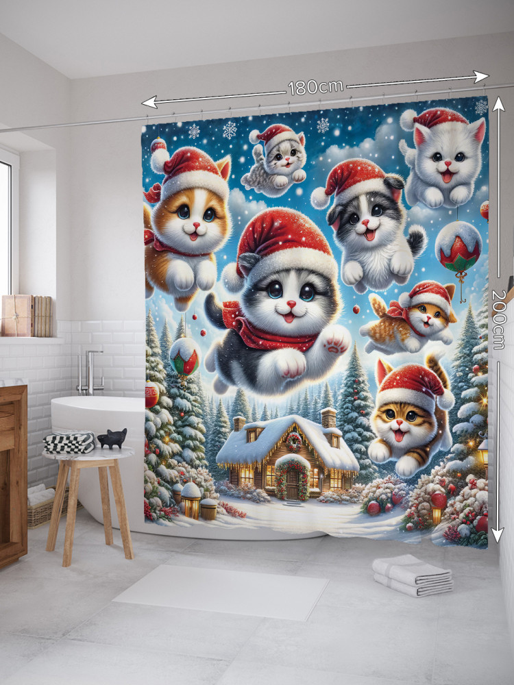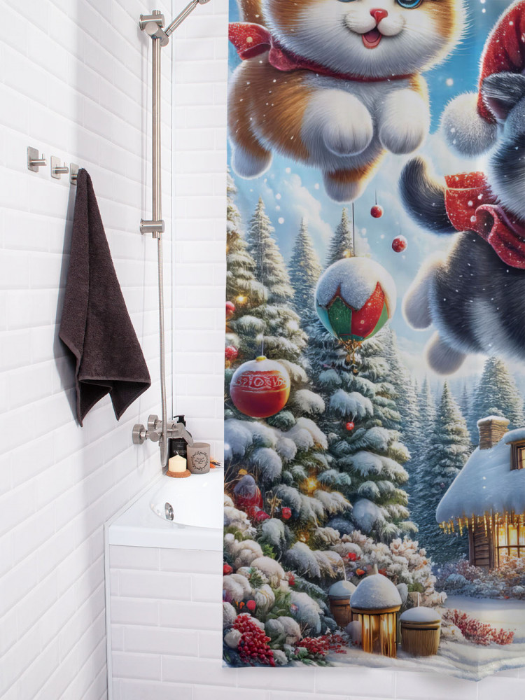 JoyArty Штора для ванной с водоотталкивающей пропиткой «Рождественские котики»-30% +83