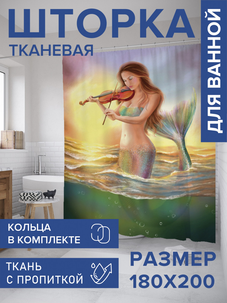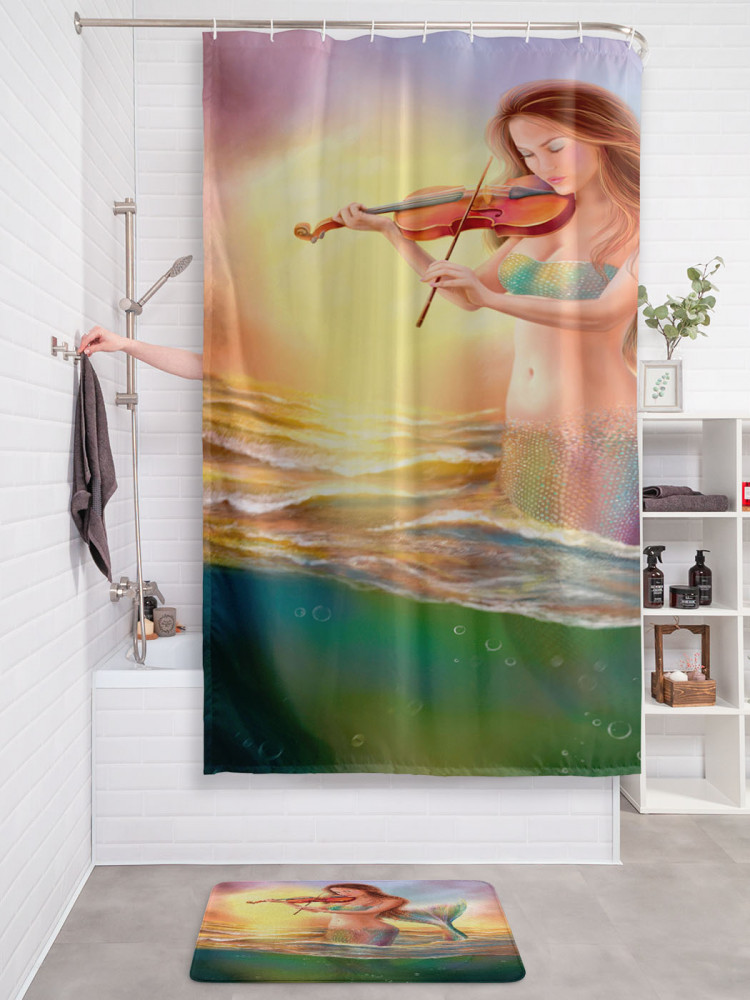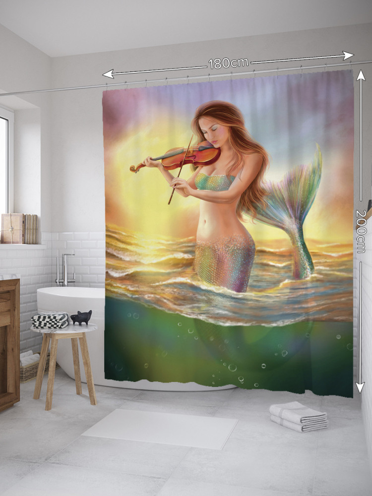 JoyArty Штора для ванной с водоотталкивающей пропиткой «Русалка и скрипка»-30% +83