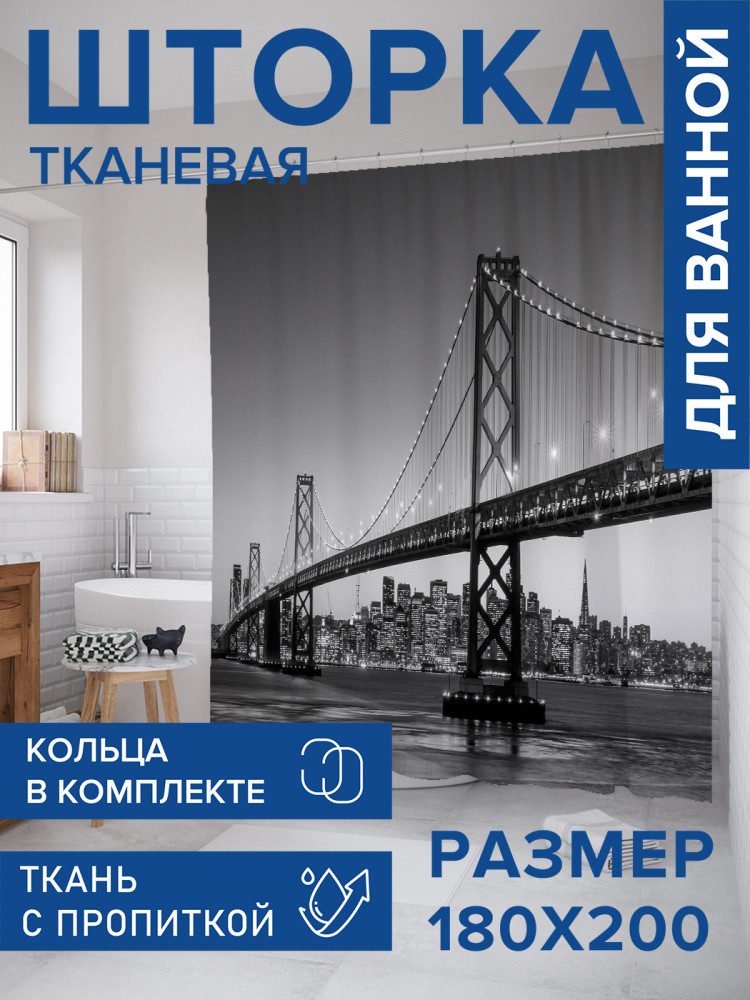 JoyArty Штора для ванной с водоотталкивающей пропиткой «Серые ночи»-30% +83