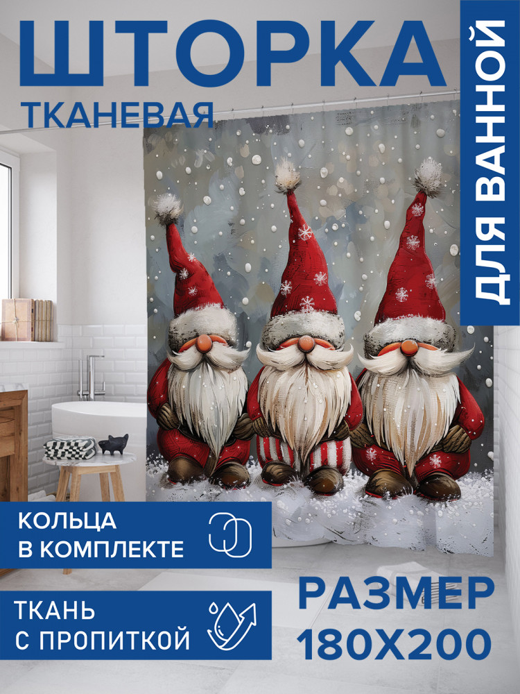 JoyArty Штора для ванной с водоотталкивающей пропиткой «Снежные гномы»-30% +83