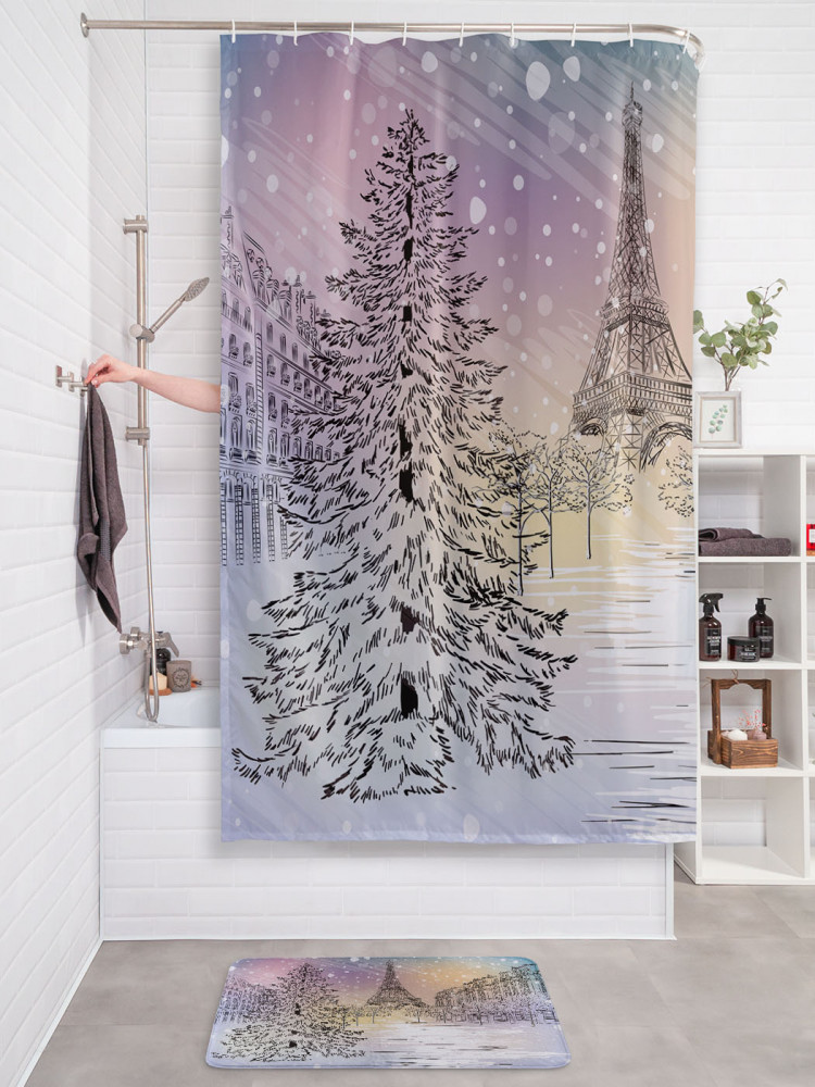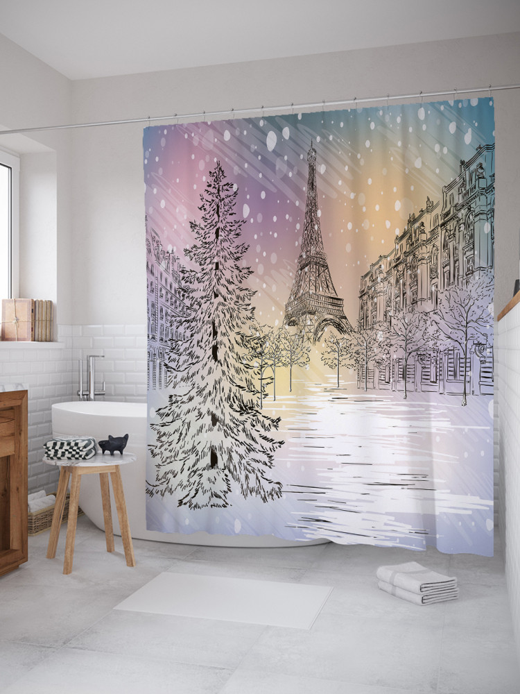 JoyArty Штора для ванной с водоотталкивающей пропиткой «Снежный париж»-30% +83