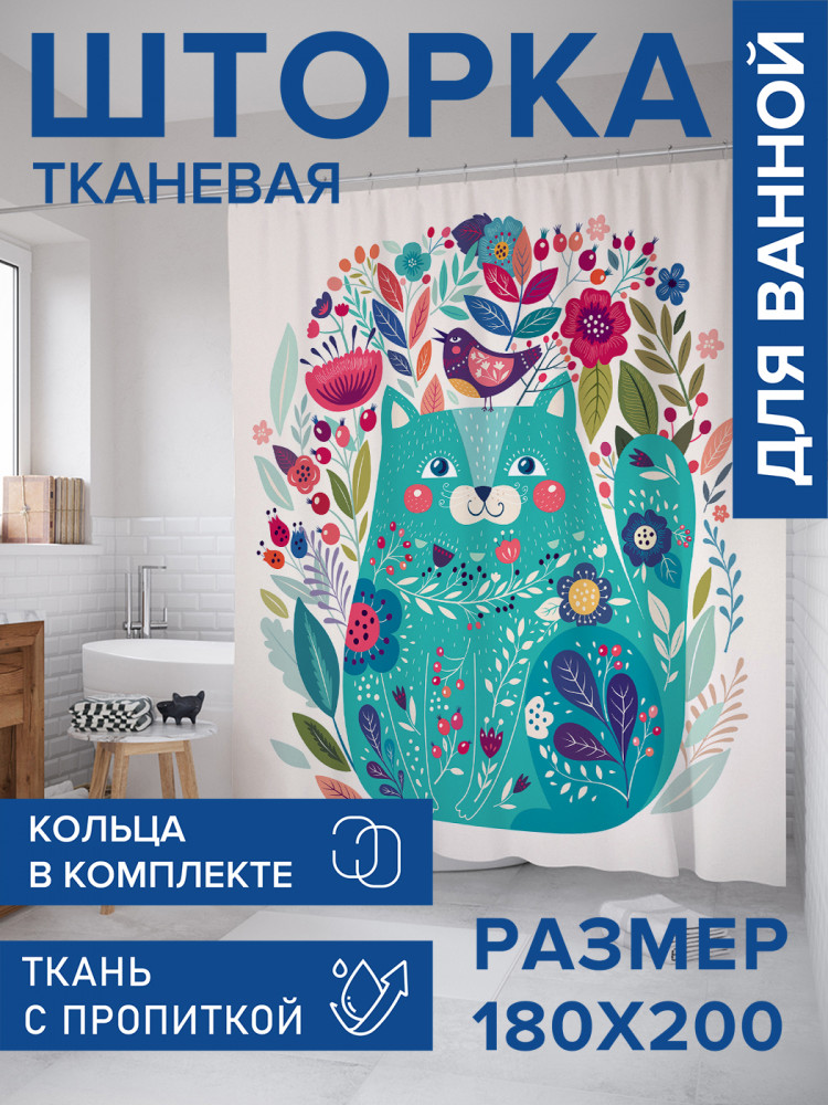 JoyArty Штора для ванной с водоотталкивающей пропиткой «Счастливый котик»-30% +83