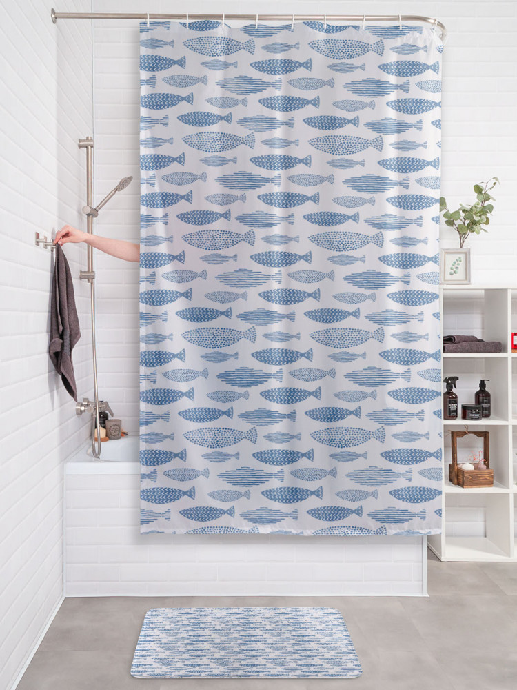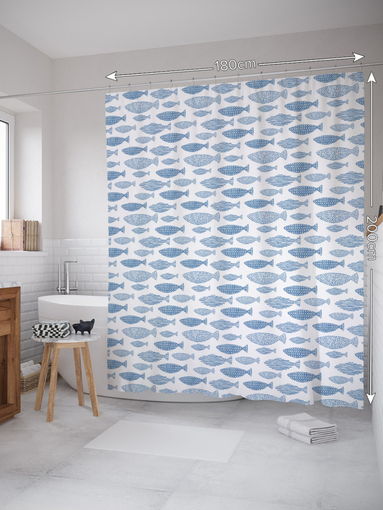 JoyArty Штора для ванной с водоотталкивающей пропиткой «Точечные и полосатые рыбы»-30% +83