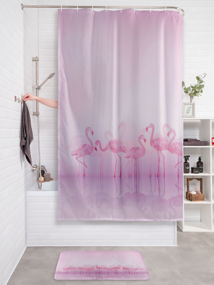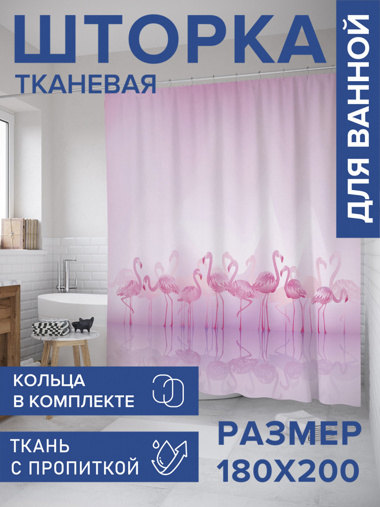 JoyArty Штора для ванной с водоотталкивающей пропиткой «Фламинго в тумане»-30% +83