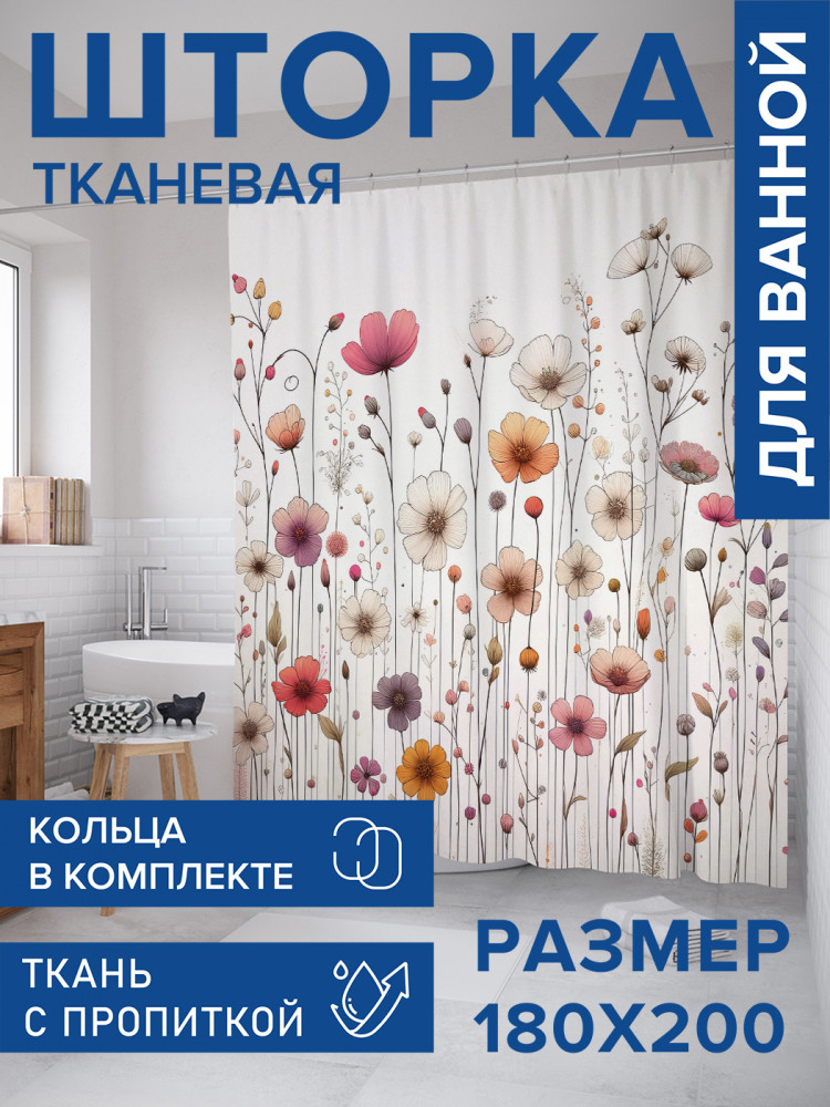 JoyArty Штора для ванной с водоотталкивающей пропиткой «Цветочный минимализм»-20% +94