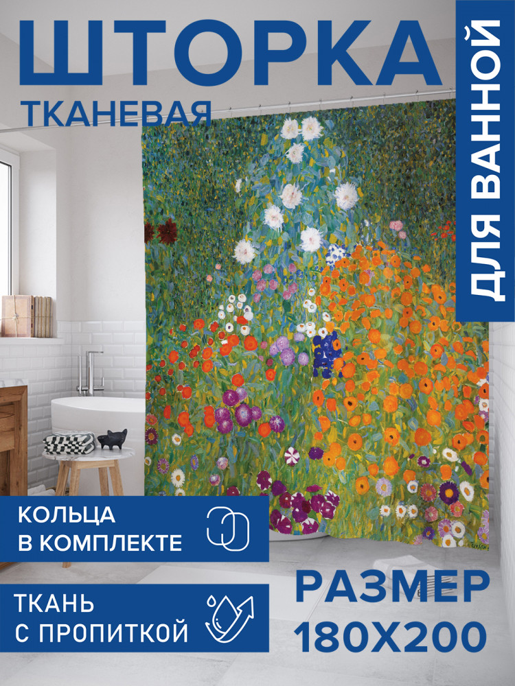 Штора для ванной с водоотталкивающей пропиткой «Цветущий сад» | JoyArty