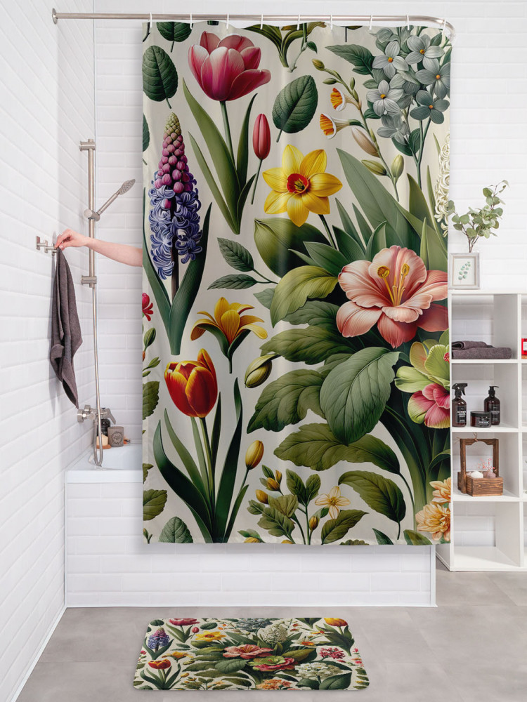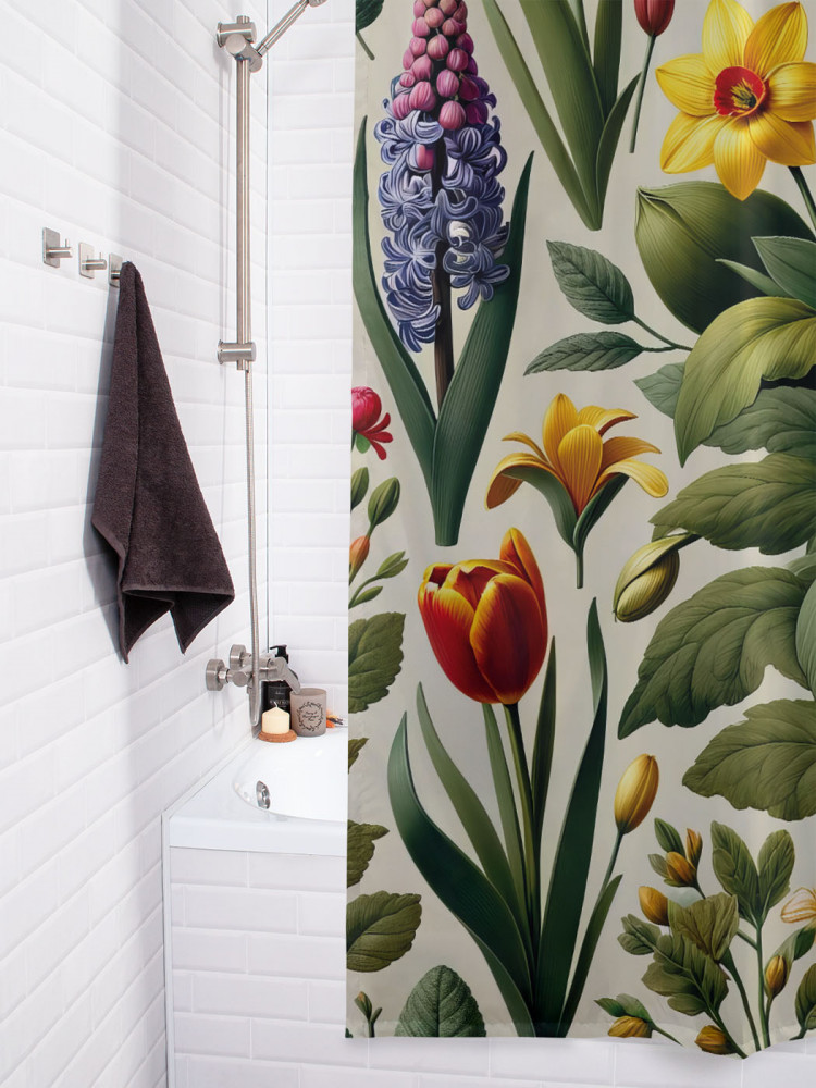 JoyArty Штора для ванной с водоотталкивающей пропиткой «Цветы в листве»-20% +263
