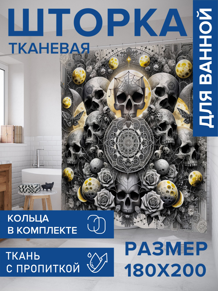 JoyArty Штора для ванной с водоотталкивающей пропиткой «Черепа в лунном свете»-30% +83