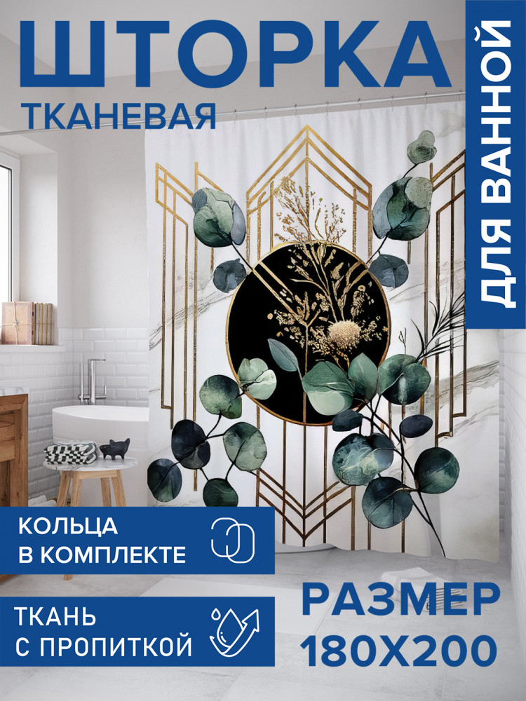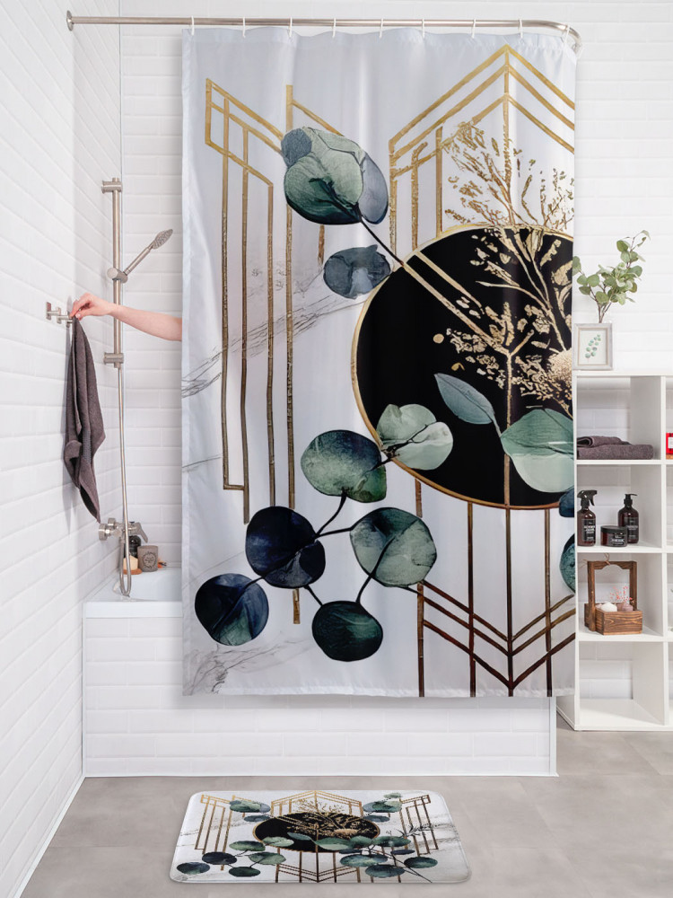 JoyArty Штора для ванной с водоотталкивающей пропиткой «Эвкалипт с позолотой»-30% +83