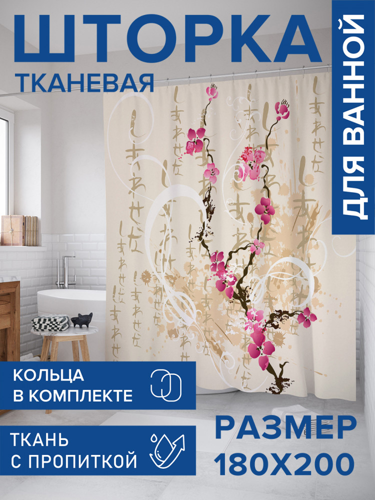 JoyArty Штора для ванной с водоотталкивающей пропиткой «Японская ветка сакуры»-30% +83