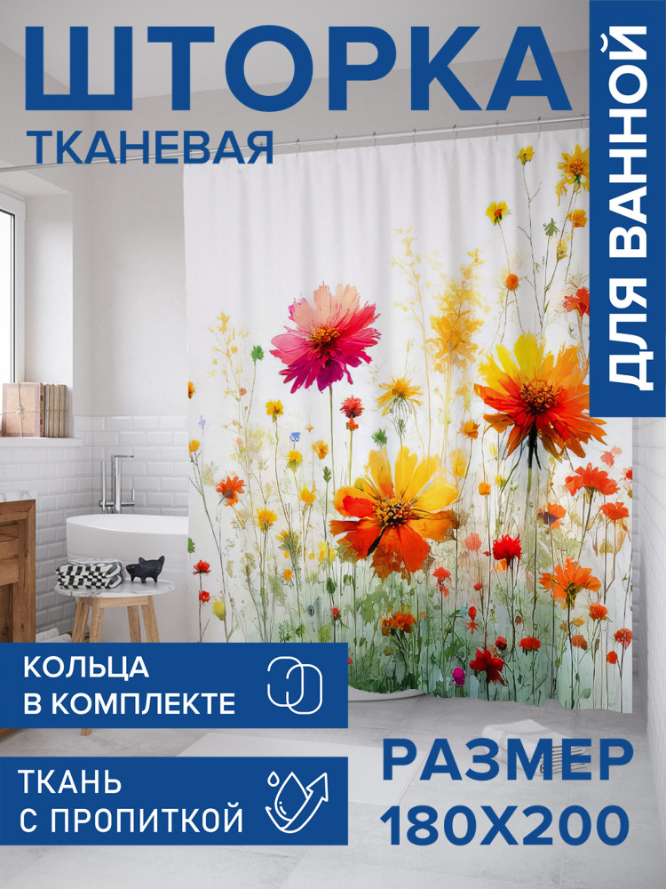 JoyArty Штора для ванной с водоотталкивающей пропиткой «Яркая поляна»-20% +94