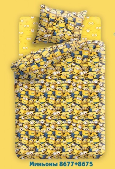 Комплект постельного белья «Миньоны» изготовлен исключительно из высококачественной бязи (100% хлопка) российского производства с применением прочных и экологически чистых красителей.