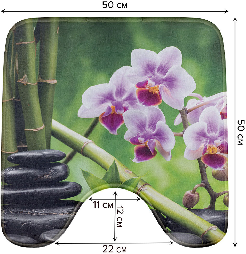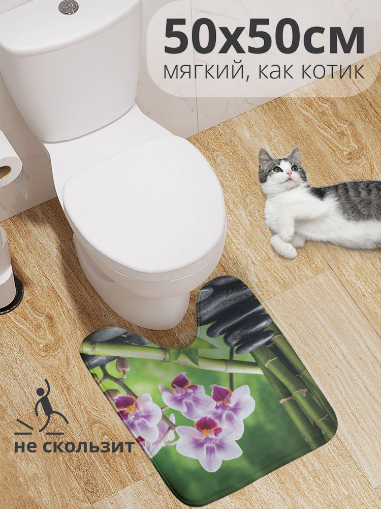JoyArty Коврик для туалета с вырезом противоскользящий «Бамбук и цветы»
